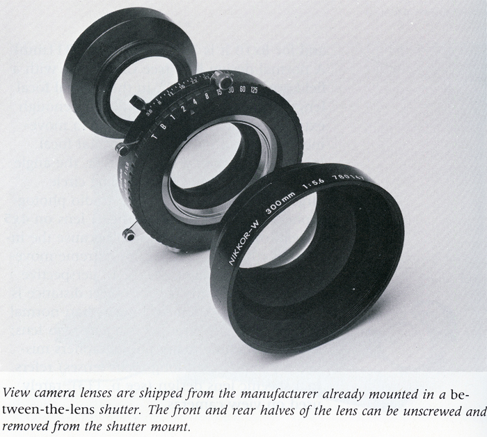 - A large format lens, 90 mm, or 150 mm maybe, this one will be equivalent to 50 mm for small 35mm size, and they are widely available at affordable prices; all large format lens are of superior quality at all levels, so it really doesn't matter that much what you get, just try to pick up a clean one, no fungus or surface scratches, and if possible assure the shutter speeds are accurate, and aperture blades freely running in and out.