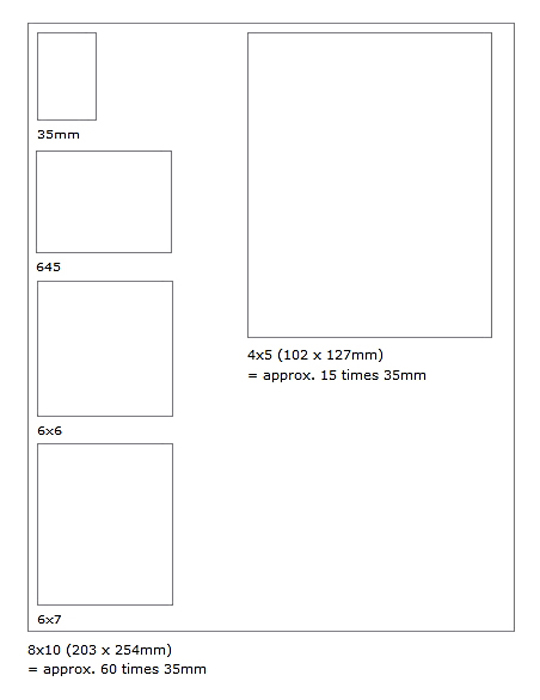 -alternatively get your scanner ready, if the one you have has masks to stick in those big negatives, and scan them; from there on everything is known to you, except that you will get really large files, full of information that can't be collected any other way. For example, a scanned file from a 8cm x 10cm negative can have many thousand megabytes of info on file, where can that be achieved?