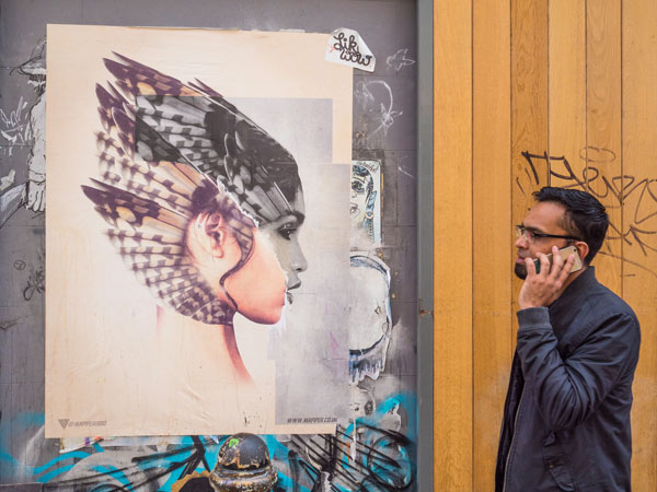 1 - Frame and wait - Many successful street shots work because of an interesting background that complements or contrasts with the subject moving across it. Find a potential scene and select your camera’s exposure settings. Then pre-focus at the distance you expect a subject will walk through the frame, and wait for them to do so.