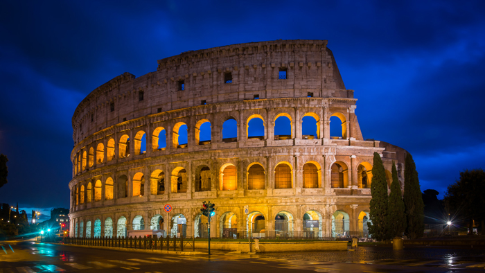 The Coliseum in Rome. I wanted this to be tourist free and illuminated against a blue-hour sky at night, ideally with some traffic trails in front. This meant getting up to catch the first subway train of the day and placing my tripod in the middle of the road. At that time, almost nobody was around.