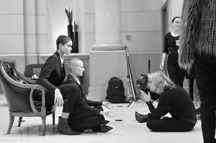 A set of shot takes roundabout 20-30 minutes. Gautier varies angles very deliberately, does series, changes light setups quite frequently. He has the ideas for his photographs in mind long before the shooting. The advantage of working with always the same team is that you don’t need to explain much. Additional ideas may develop at the set, the order of sets may change, and then you feel the high level of loyalty and respect in their human interaction. No loud word, no moaning, all work in unison, no discussion who actually grabs the task. Things get done, everybody shows up in time, like mentioned, a machinery. A very kind and polite kind of “machine”, with a good sense of humour and portion of fun.