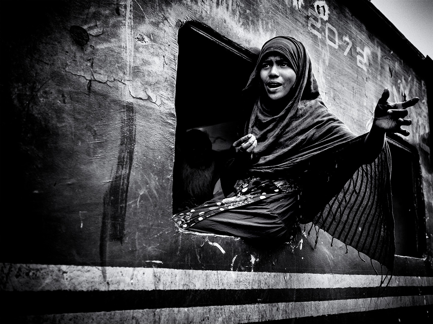 'Girl in a train window'