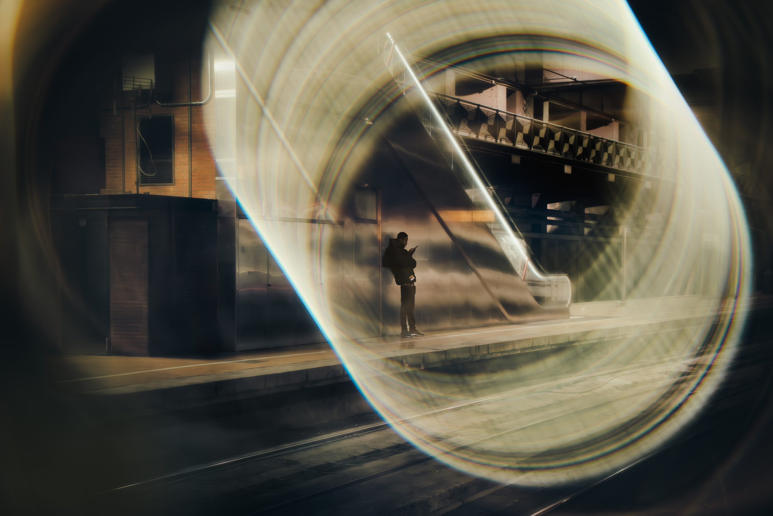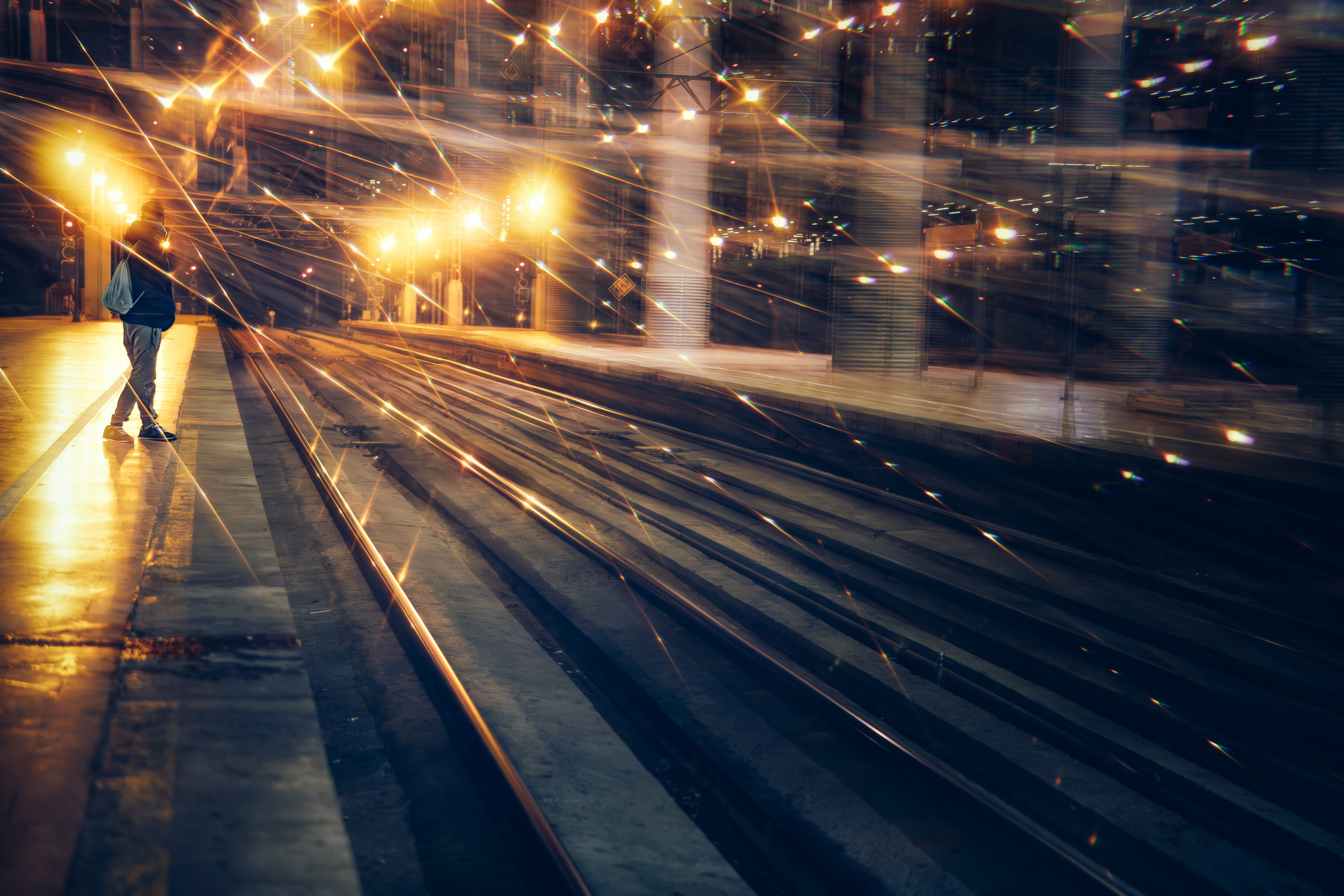 In the case of a series of photographs created around a theme, it is often more planned than the usual street-snap style of shooting. Some of the series I have created have involved the deliberate use of prism filters and split dioptre filters. I use these filters not for the purpose of using them per se, but because I think they will be useful in realising the theme I have chosen, so I think about the time of day and light source that will give the best effect before I start shooting in a planned way. A series that took several months to complete, such as the Galaxy Express series, is quite planned. I photographed by first imagining the image I wanted, such as "a single figure on a platform with a street lamp". (e.g. the work entitled "Meteor Shower").