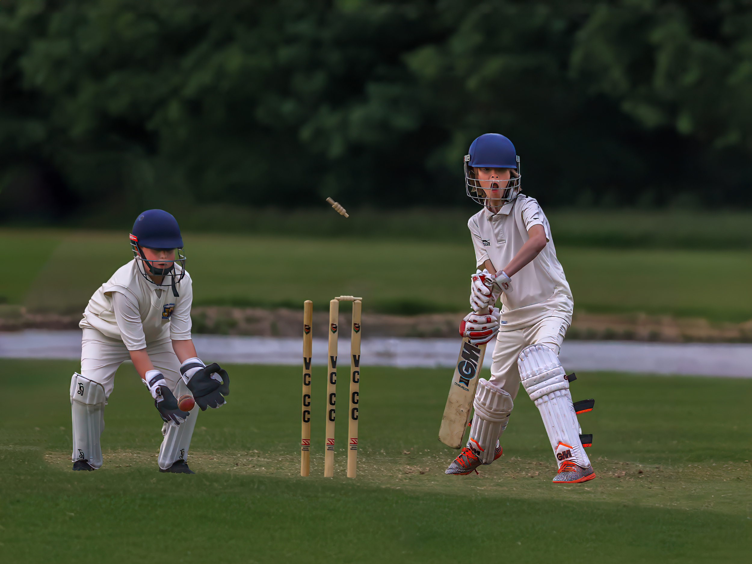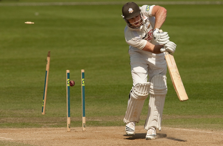 Cricket is a ball game played by two teams of eleven players. Cricket was invented in England and is similar to American baseball, but cricket is much older. Cricket is played on an oval grass pitch.