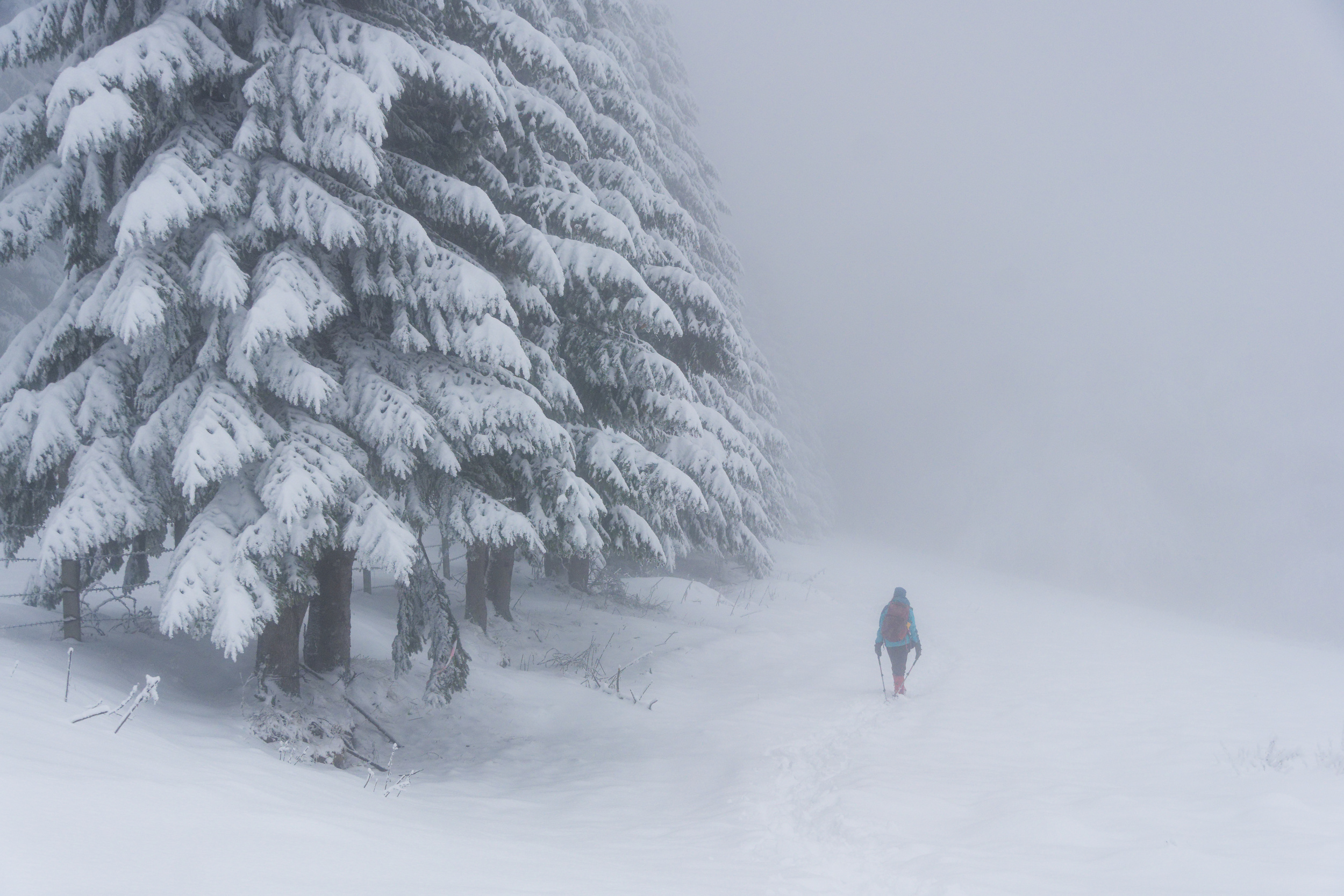 When the whole landscape is hidden under a blanket of snow, the composition looks more minimalist and interesting. Sometimes there is so much snow on the ground that the horizon is invisible, giving more freedom and the opportunity to create a composition to the photographer's taste.