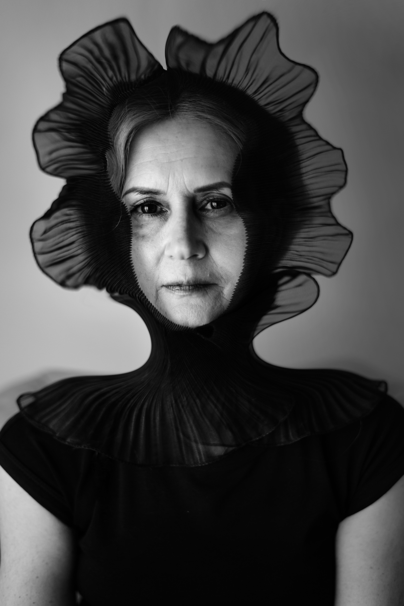When I'm working with a model, I like to keep things flexible and collaborative. There's usually not an intense amount of pre-planning involved — I simply ask my subjects to come dressed in plain black, which helps keep the focus on them and allows for creative freedom. Sometimes we’ll briefly discuss ideas in advance, especially for more conceptual shoots where there’s a theme or message we’d like to explore. In those cases, either I or the model might bring an idea to the table, and we build from there. Other times, the magic happens in the moment. As we shoot and chat, I might pull out a few props that feel right, or I’ll let the model choose how they want to express themselves. For me, the best sessions are those that feel like a true collaboration — an organic mix of energy, inspiration, and trust between me and the person in front of the lens.