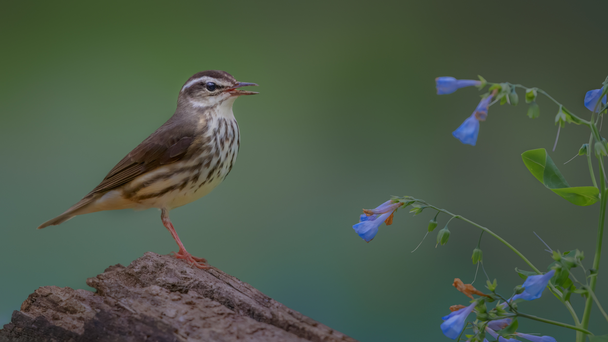 Louisiana Waterthrush Serenading the Wild Bluebells