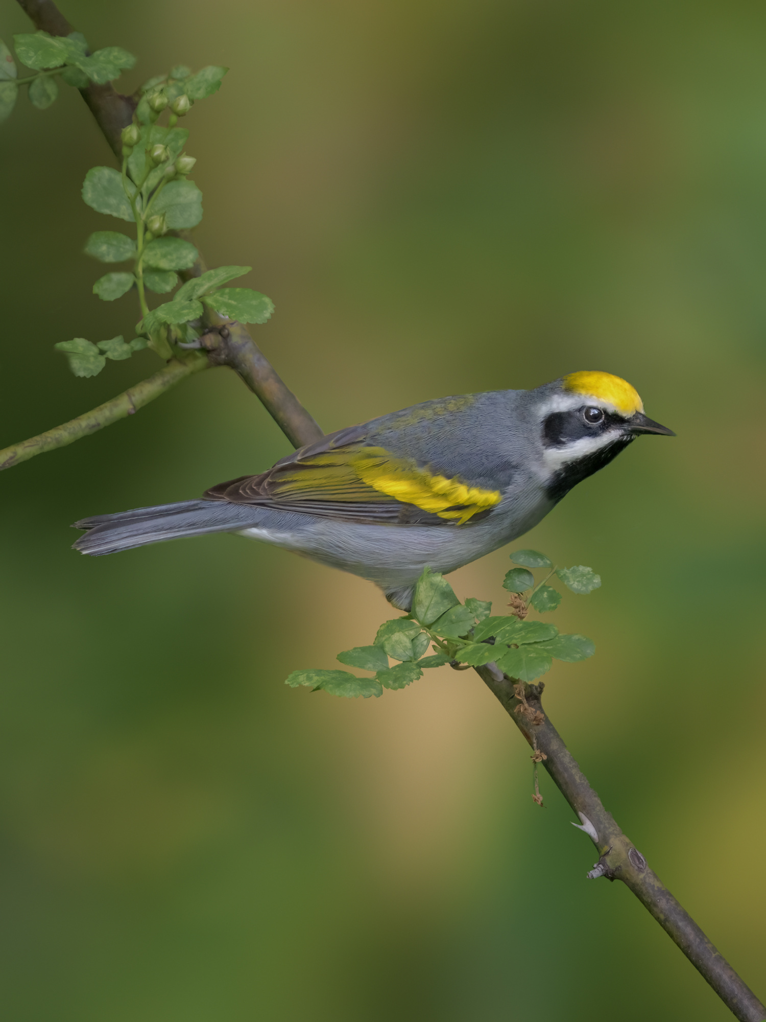 'Golden-winged Warbler' Perched on Wild Rose